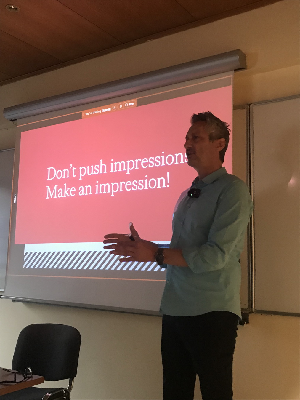 Τον ευχαριστούμε θερμά για τη ξεχωριστή παρουσία του και την έμπνευση που δημιούργησε στους φοιτητές μας, μέσα από τη ματιά ενός κορυφαίου επαγγελματία της σύγχρονης διαφήμισης.