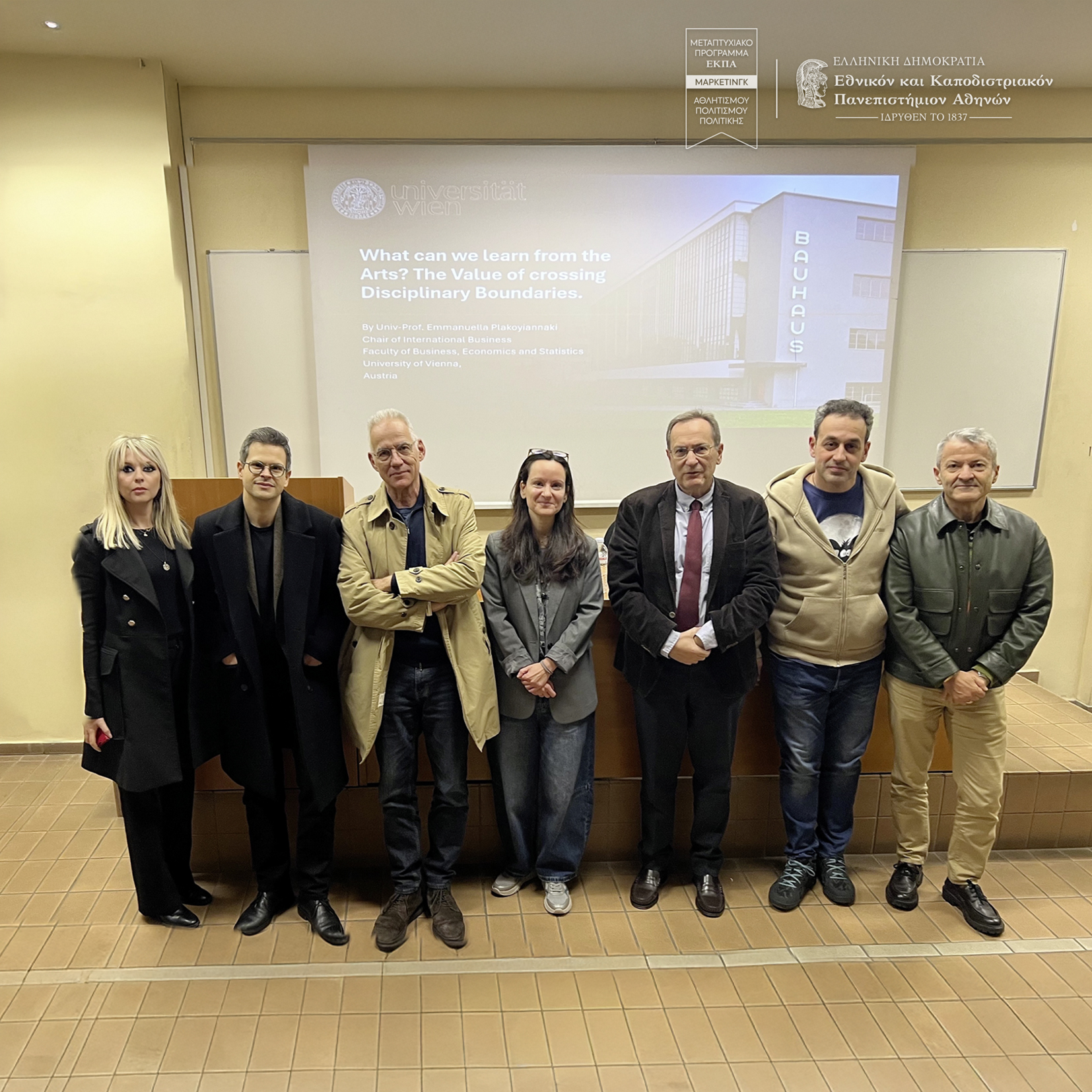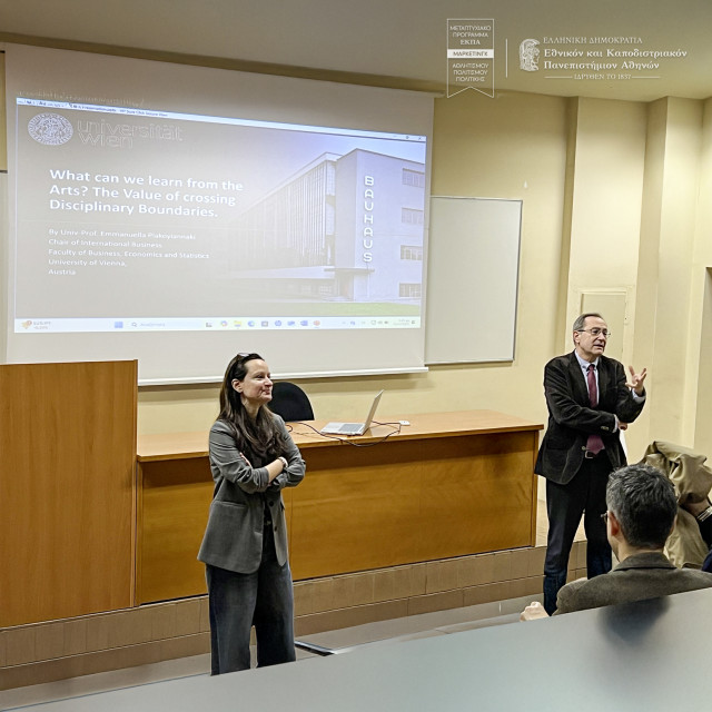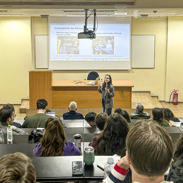 We were delighted to host Univ.-Prof. Dr. Emmanuella Plakoyiannaki, Chaired Professor of International Business at the University of Vienna (Austria), as part of a series of specialized lectures by distinguished professors organized by the MSc programme in Sports, Culture, Political Marketing. In her lecture, Professor Plakoyiannaki explored a timely and thought-provoking topic: the lessons that Marketing and Business Administration can draw from the Arts. She highlighted the importance of interdisciplinary thinking and creativity in contemporary management. In particular, she drew on the Bauhaus movement to discuss design innovation and architecture, and their implications for marketing and business practice.